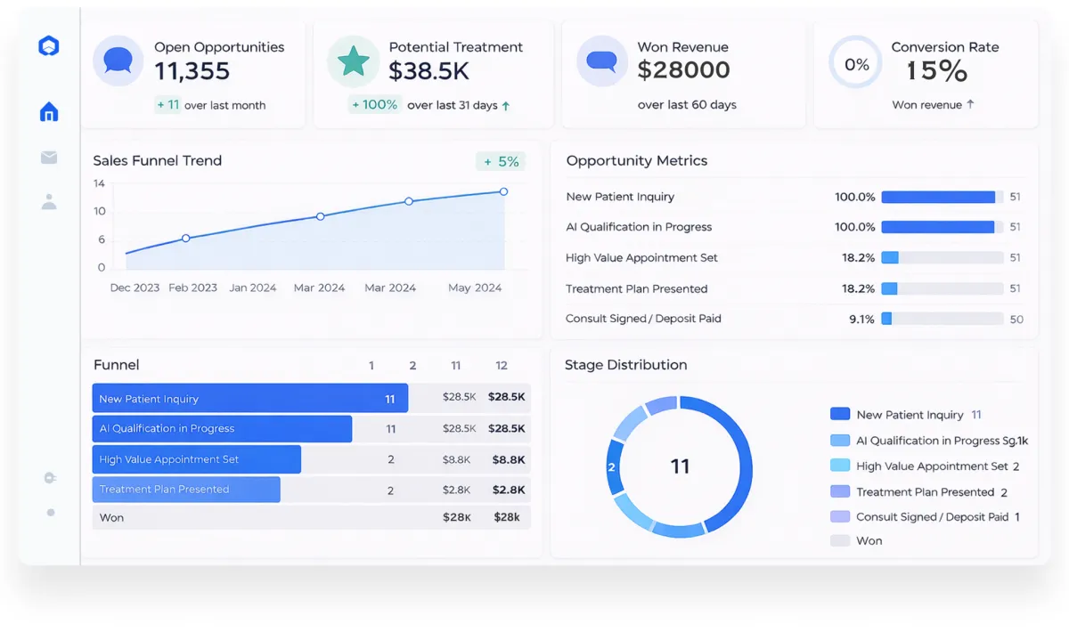 Through our partnership with OphirGrowth, your live dashboard tracks exact ROI—converting leads into booked appointments and using automated SMS to eliminate costly no-shows.